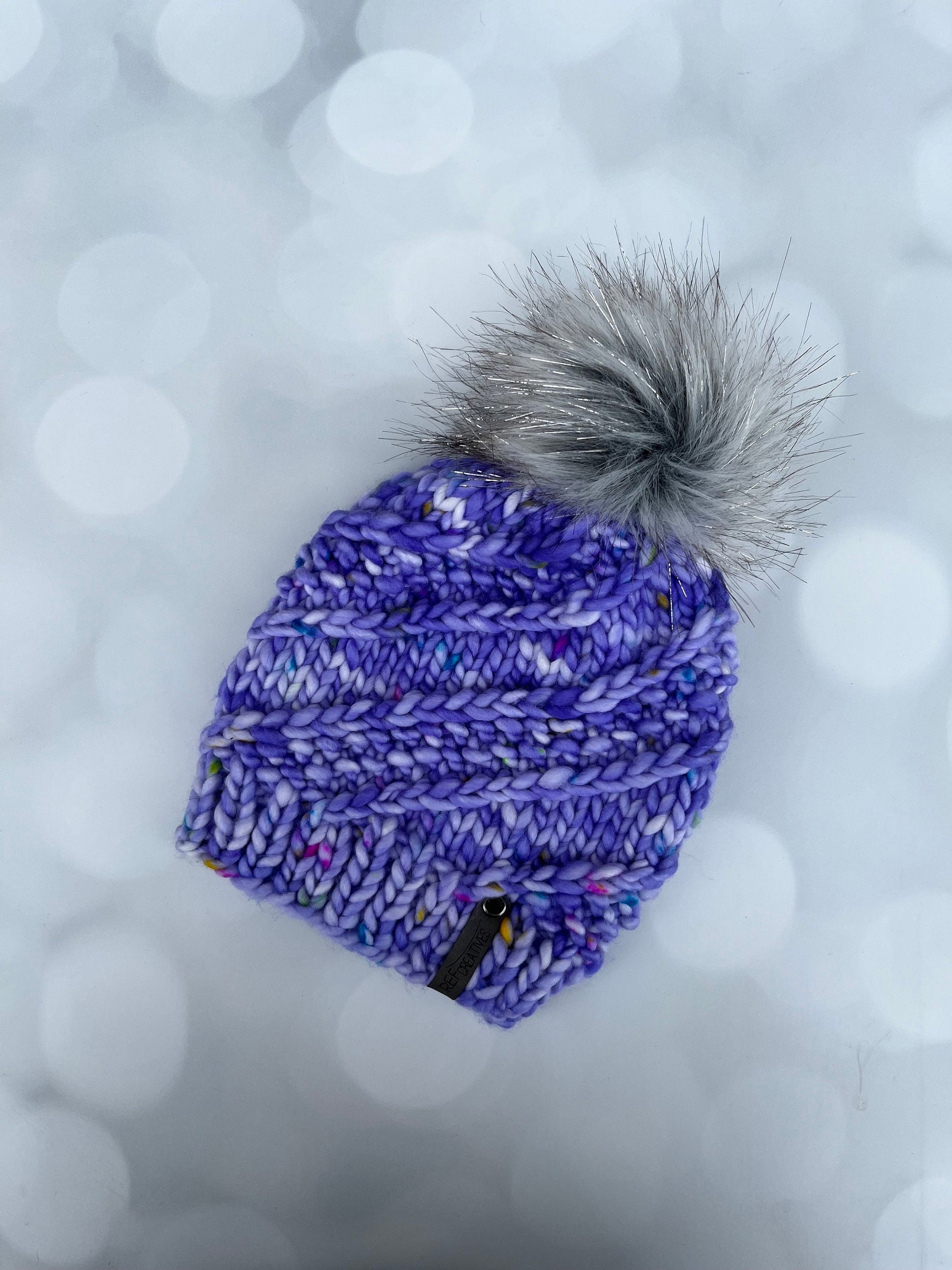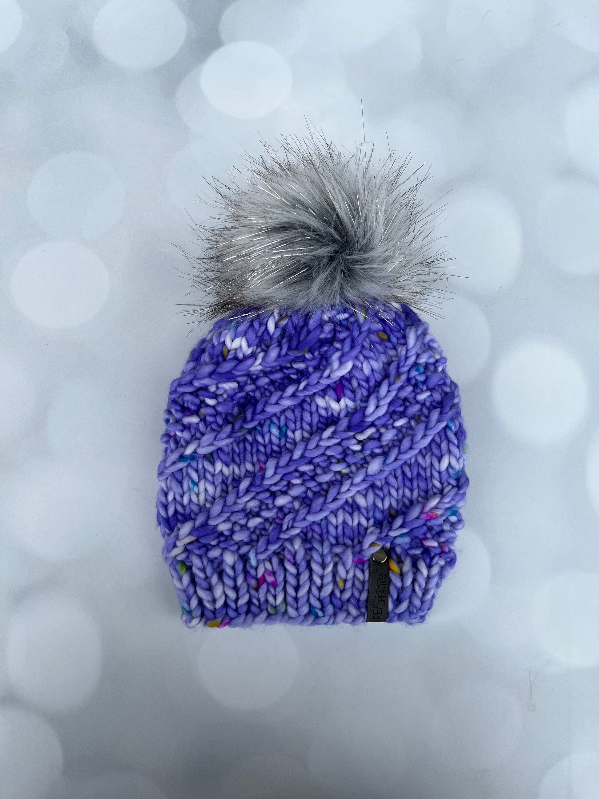 Luxury Purple Merino Wool Knit Hat - Rainbow Nerds Sidewinder Hand Knit Hat with Hand Dyed Yarn