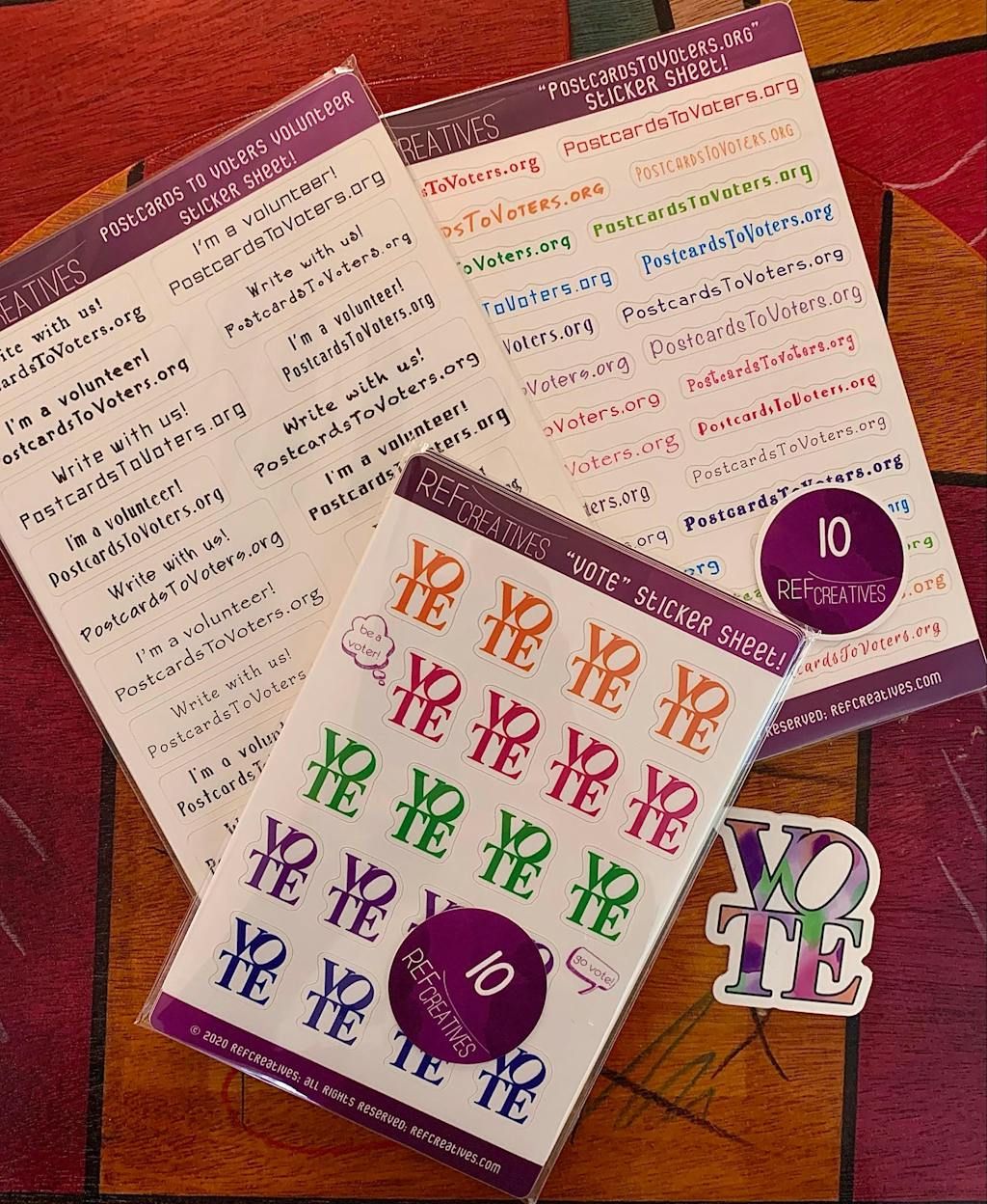 Decorate your GOTV postcards with these Postcards to Voters stickers! Each sticker has the web address βPostcardsToVoters.orgβ so that your recipients can learn about Postcards To Voters and maybe even sign up to volunteer themselves!